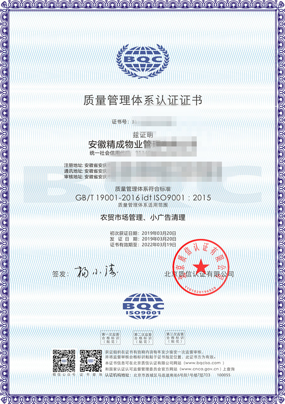 北京質(zhì)信認證有限公司安徽分公司